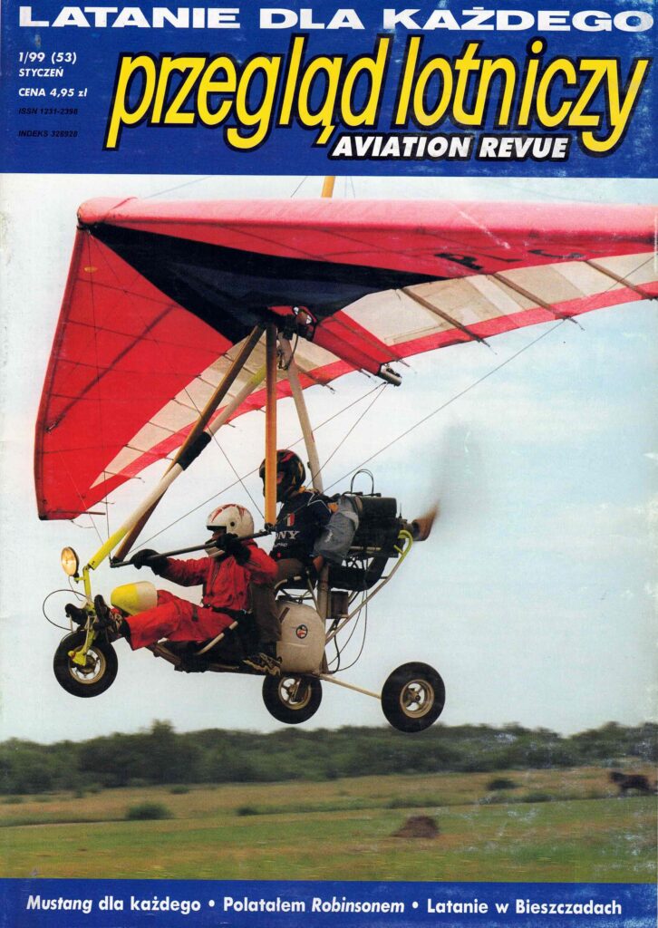 Przegląd Lotniczy – styczeń 1999 Zespół Redakcyjny 01.01.1999 1999 Możliwość komentowania Przegląd Lotniczy – styczeń 1999 została wyłączona 684 Odsłon Spis numeru: Mustang dla każdego[Konstrukcje / strona: 4 / autor: Robert Pietracha]Opis konstrukcji samolotu Midget Mustang i Mustang II Instytut Aerodynamiczny w Warszawie[Historia / strona: 8 / autor: Tomasz Demidowicz]Historia Instytutu Aerodynamicznego protoplasty Instytutu Techniki Lotniczej i Mechaniki Stosowanej Pomysły nie tylko zwariowane Rekreacja – szansa na biznes[Konstrukcje / strona: 10 / autor: Edward Margański]Autor opisuje koncepcje różnych samolotów dla General Aviation Historia słynnego zdjęcia[Wrakowisko / strona: 12 / autor: Szymon Serwatka]Opis wypadku Liberatora nad Blachownią Śląską w czasie II WŚ 100-lecie urodzin Bolesława Orlińskiego[Ludzie / strona: 13 / autor: Stanisław Błasiak, Stanisław Babiarz]Notatka na temat przypadającej 13.04.1999 r. setnej rocznicy urodzin Bolesława Orlińskiego 100-lecie urodzin Stanisława Skarżyńskiego[Ludzie / strona: 13 / autor: Krzystof Krawcewicz]Notatka na temat przypadającej 1.05.1999 r. setnej rocznicy urodzin Stanisława Skarżyńskiego Ciągłość i konsekwencja[Relacje z imprez / strona: 15 / autor: Krzystof Krawcewicz]Relacja z wystawy osiągnięć w dziedzinie konstrukcji lotniczych wydz. MEiL PW na Politechnice Warszawskiej Na spotkanie z Vassamą[Szybownictwo / strona: 16 / autor: Piotr Ligwiński]„Relacja z Zawodów Starych Szybowców „”Oldies but Goldies””, Jami, Finladia, 18-26.07.1998 r.” Polatałem Robinsonem[Latanie śmigłowcowe / strona: 20 / autor: Jarosław Hajduk]Autor opisuje swoje wrażenia z lotu na śmigłowcu Robinson R 22 Ultralekkie wiropłaty na Farnborough ’98[Relacje z imprez / strona: 21 / autor: Graham Drabble]Opis prezentowanych podczas targów Farnborough wiropłatów Akrobacja – inna niż dawniej[Akrobacja / strona: 22 / autor: Ryszard Łukasiewicz]Autor dzieli się swoimi spostrzeżeniami na temat zmian w akrobacji szybowcowej Rekordy Hany i Diany[Szybownictwo / strona: 23 / autor: Jacek Marszałek]Notaka na temat rekordów szybowcowych ustanowionych przez czeską szybowniczkę Hanę Zejdową na szybowcu SZD-56-1 Diana Najdłuższy przelot szybowcowy w Europie[Szybownictwo / strona: 23 / autor: Jan Salwiński]Opis przelotu szybowcowego na trasie o długości 1527 km Centro-wariometr[Konstrukcje / strona: 24 / autor: Jan Salwiński]Opis elektronicznego wariometru posiadającego jeszcze wieleinnych funkcji Wyniki konkursu na najlepszego pilota balonowego w roku 1998[Baloniarstwo / strona: 25 / autor: Henryk Kącik]Wyniki konkursu na najlepszego pilota balonowego w roku 1998 Zawody na celność lądowania[Szybownictwo / strona: 25 / autor: Roman Matyjewicz]Notatka na temat szybowcowych zawodów na celność lądowania rozegranych na lotnisku Pobiednik Wielki, 12.09.1998 r. Sport mikrolotowy w roku 1998[Motolotniarstwo / strona: 31 / autor: Krzysztof Jurkiewicz]Podsumowanie sezonu ’98 Ostatni lot Maćka[Ludzie / strona: 32 / autor: Tatiana Aleksandrowicz]Opis postaci motolotniarza Macieja Parasiewicza i katastrofy motolotniowej w, której zginął Ostatni lot Maćka[Motolotniarstwo / strona: 32 / autor: Tatiana Aleksandrowicz]Opis postaci motolotniarza Macieja Parasiewicza i katastrofy motolotniowej w, której zginął Bieszczady[Paralotniarstwo / strona: 34 / autor: Wacław Kuzło]Opis Bieszczad jako gór pełnych miejsc do latania na paralotniach Poddąbie-suplement[Paralotniarstwo / strona: 36 / autor: Grzegorz Sujecki]Opis latania na klifie w okolicach Poddąbia